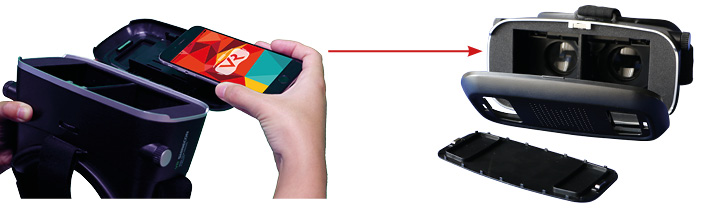 Dopo aver attivato l’app SIDA VR, inserire lo smartphone nel visore e staccare il frontalino magnetico anteriore.