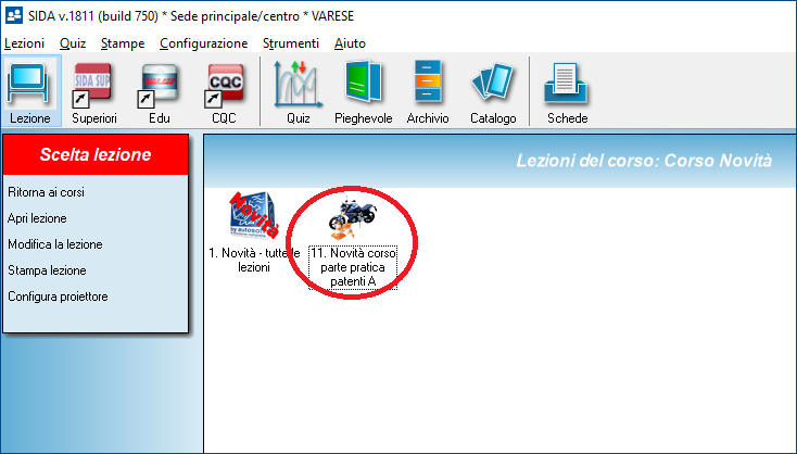 Tutto il materiale didattico nuovo o modificato è visibile dal corso Demo: Novità nella lezione "Novità corso parte pratica patenti A".