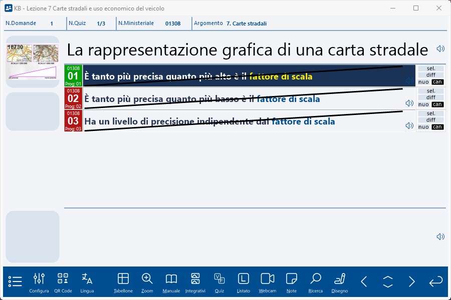 Il quiz faceva parte della lezione n. 7 (Carte stradali e uso economico del veicolo) del corso KB.